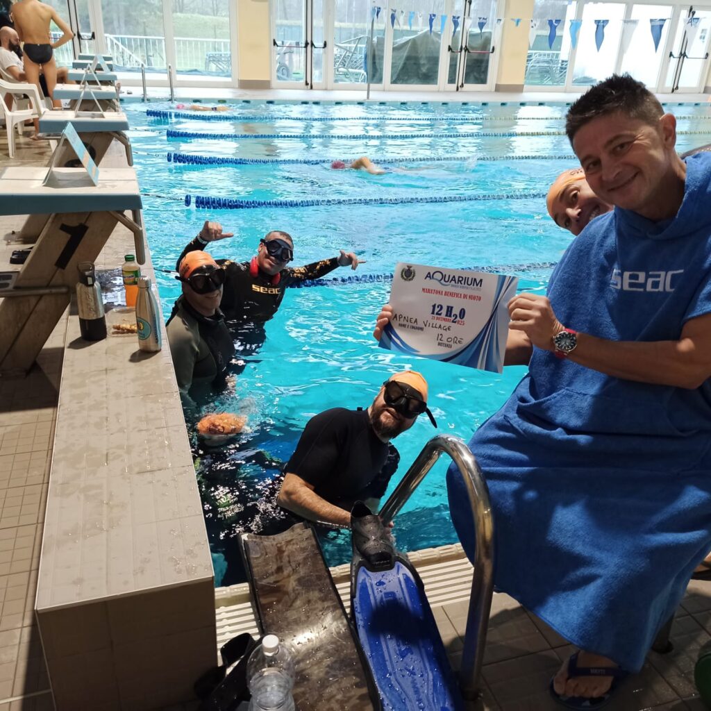 Apnea da Guinness dei Primati a Ronco Scrivia: 60 chilometri sott’acqua in 12 ore tra sport, solidarietà e spirito natalizio